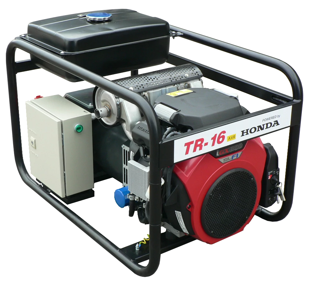 Különösen precíz feszültség szükségessége esetén is (pl. számítógépek, elektronikus készülékek) javasoljuk az elektronikus feszültségszabályzású TR-16 AVR generátort, aminek a terhelés változása esetén is stabil a feszültsége és frekvenciája.