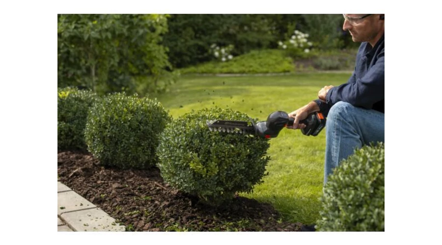 Erőteljes akkumulátoros bokornyíró két adapterrel, intelligens tárolóval. Kompakt kézi akkumulátoros bokornyíró, tökéletes bokrok metszéséhez, alakításához. Csúszásgátló fogantyúval és felügyelet nélkül hagyott automatikus leállítással javított biztonsággal. A tárolást megkönnyíti a mellékelt horog és a 18 V-os POWER FOR ALL akkumulátorrendszer része.