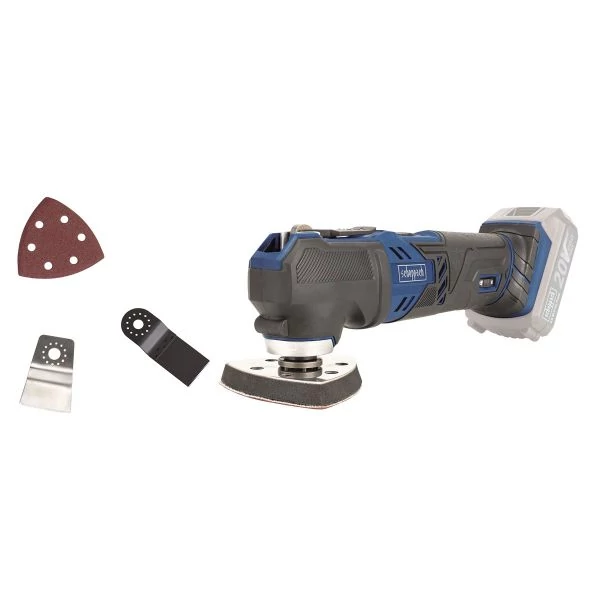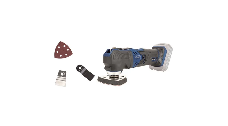 Scheppach CMT200 20 ProS nagyszerűen felszerelt multifunkcionális akkus gép, amely kiválóan alkalmas festék és ragasztóanyag eltávolításához, csiszoláshoz, sarkokban vagy szűk helyeken történő vágásokhoz, szilikon tömítőanyagok eltávolításához, ablakkeretek felújításához, csövek, csempék és kerámia lapok, gipszkartonok, műanyagok és lágy fémek vágásához, vagy kisebb felületek köszörüléséhez és reszeléséhez. Ezekhez a munkafolyamatokhoz a gép nagy teljesítményű, szabályozható fordulatszámú motorral, oszcilláló fejjel, gyorsan cserélhető tartozék rendszerrel (a fejet úgy alakították ki, hogy a piacon fellelhető legtöbb szabványos kiegészítőnek megfeleljen) valamint ergonomikus, csúszásmentes markolattal rendelkezik. A gép tartozéka egy fűrészlap adapter, egy kaparó adapter és egy delta adapter csiszolópapírral együtt. A gép Scheppach 1.5 / 2/4 Ah akkumulátorokkal használható. A gépet akkumulátor és töltő nélkül szállítjuk.