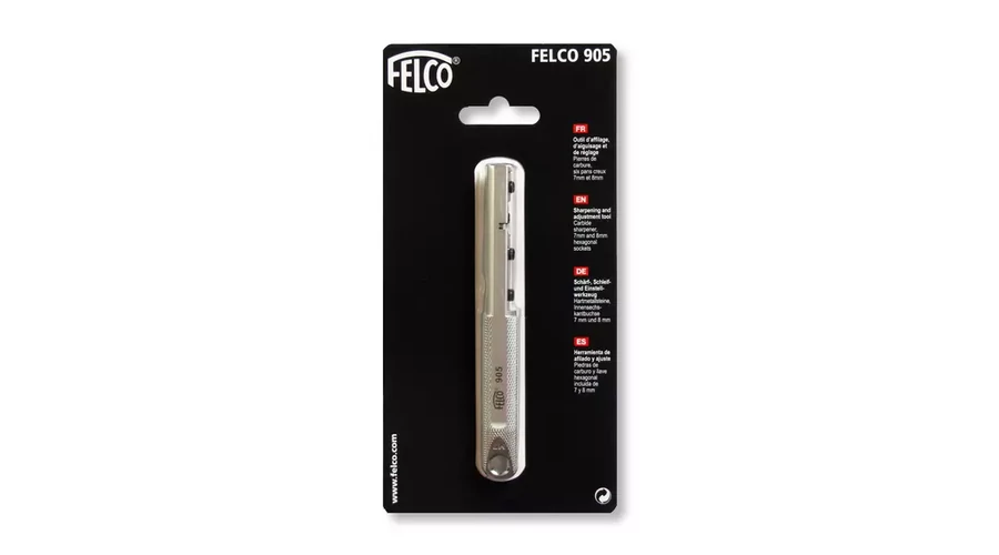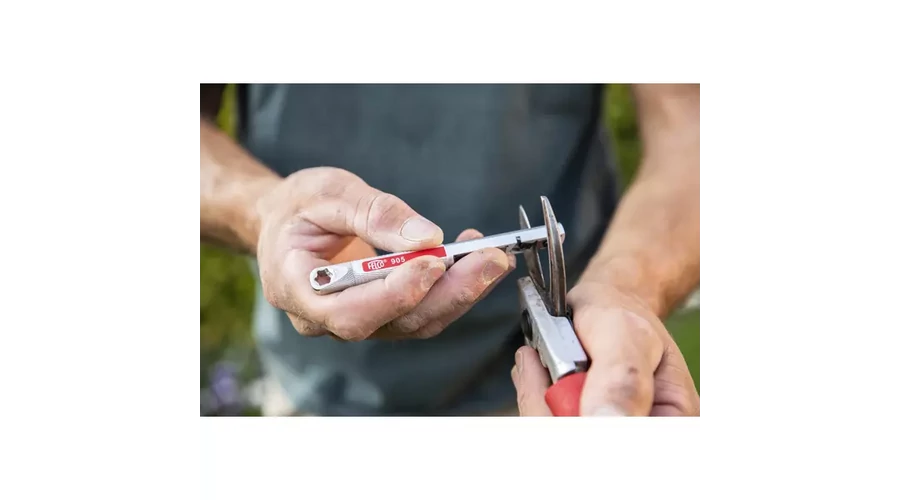 A FELCO metszőollók pengéjének fenése, élezése és beállítása új lendületet kap a FELCO 905 szerszám bemutatásával. A multifunkcionális élezőt nemcsak a profi kertészek, hanem a kertbarátok is szeretni fogják, mert gyorsan élez, hatékony és könnyű is vele a munka. A 905 néhány mozvdulattal képes folyamatosan borotvaélesen tartani a metszőollók és ágvágók vágópengéjét. FIGYELEM! A FELCO 905 csak jobbkezes ollókkal használható. Az élező nem alkalmas az akkus metszőollók, balkezes ollók és a rávágó (üllős) metszőollók élezésére. Ezekhez a metszőollókhoz a FELCO 902 vagy 903 élezőt ajánljuk.