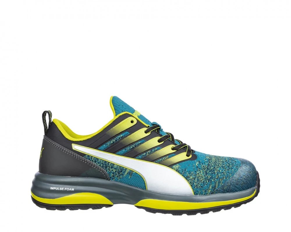 Puma Charge Green Low S1P ESD HRO SRC munkavédelmi cipő az új Motion Cloud család tagja. Üvegszálas orrmerevítővel és hajlékony, továbbfejlesztett (FAP®lite) extrém szakadásbiztos kompozit talpátszúrás elleni védelemmel ellátott munkavédelmi lábbeli. SAFETY KNIT® felsőrész. Lélegző bélés és új evercushion® CUSTOM FIT MID talpbetét, ami még magasabb kényelmet biztosít, köszönhetően az illeszkedésnek és kitűnő párnázottságának. 300°C-ig hőálló, csúszásmentes Motion Cloud (a legújabb futócipő technológia, beépítve a munkavédelembe) gumi talp, Impulse.Foam® talpszerkezettel felépítve. További tulájdonságok: ESD védelem, fémmentesség, vegan, unisex, TPU orrborítás és TPU sarokvédelem, FUSETEC® elemek, Innovatív POWER PLATE talpelem, ami tovább növeli a már az IMPULSE.FOAM® által biztosított párnázottságot, ezáltal optimalizálja az energiaelnyelést a lehető legmagasabb kényelemmel. Továbbá nagyobb staibilitást biztosít a lábnak.