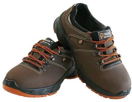 Styler Low (S3+SRA) könnyű, vízlepergető bőr munkavédelmi cipő, barna, jólláthatósági betét, olaj- és saválló, antisztatikus, kopásálló, SRA csúszásmentes kétrétegű PU talp, kompozitkapli (12) és fémmentes talplemez