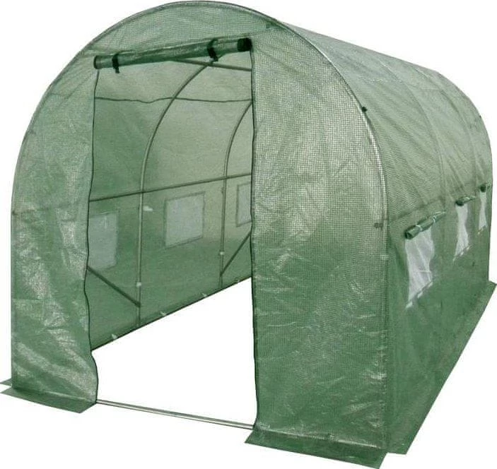 Tágas fólia, amelynek váza fémprofilokból készül. Az elülső fal nagy bejárati ablakkal van felszerelve, amely hőmérséklet-szabályozásra is használható. A hőmérséklet szabályozására a fóliadoboz oldalán 6 ablak is használható.