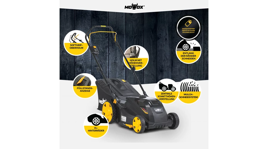 Hozza formába gyepét a Comfort sorozatunk EM 3440 PX-Li akkus fűnyírójával! 40 V-os motorjával és mindössze 10,6 kg-os súlyával (akkumulátorral együtt) a fűnyíró igazi kalapács - hihetetlenül erős, ugyanakkor kompakt és praktikus! Központi magasságállítással rendelkezik öt fokozatban: 25 mm-től 75 mm-ig, így pillanatok alatt sűrű és telt gyepet tud nyírni - mindezt kábelek és bosszantó kipufogógázok nélkül. Mowox EM 3440 PX-Li modellünk ideális segítőtárs kisebb kertekbe is. A 40 V-os villanymotornak és a 34 cm-es vágási szélességnek köszönhetően könnyedén és megbízhatóan vágja le a hosszú és vastag füvet akár 200 m²-es gyepfelületen is. A 35 literes fűgyűjtő kosár szintjelzővel van felszerelve. Így nem kell folyamatosan megállnia, hogy megtudja, ideje-e kiüríteni vagy sem.