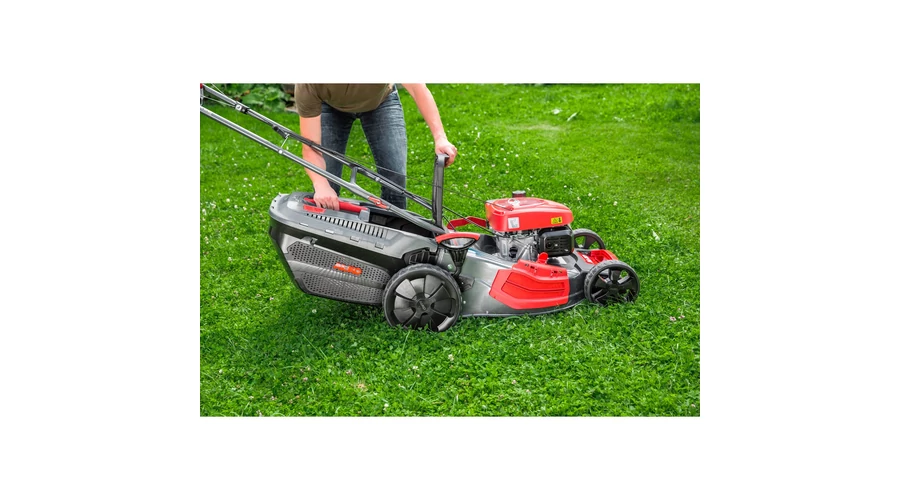 46 cm vágószélességével a Comfort 46.0 SA-Plus benzines fűnyíró a közepes méretű kertekben is (akár 1400 m² gyepfelületig) gyors haladást biztosít. A vágómagasság állítás központilag 7 fokozatban 30 mm-80 mm-ig történik . Az 2,1 kW erős AL-KO Pro Motor a felső szelepekkel kiemelkedő hatásfokot biztosít, ami nagyobb teljesítmény és kevesebb fogyasztás révén észlelhető. Az 1 fokozatú kerékhajtás és az XXL - kerekeknek köszönhetően a fűnyírás a kertben fáradságmentesen végezhető. A 4IN1funkció magába foglalja a fűnyírás, fűgyűjtést, mulcsozást és az oldalkidobást. Az ergonomikusan kialakított tolókar munka közben emeli komfort érzetünket. A levágott fű az extra magas acéllemez ház révén, a MaxAirflow technológiának köszönhetően, a 60 literes, telítettségjelzővel ellátott nagy fűgyűjtőben hátul landol, mely így teljesen feltöltődik és ritkábban kell kiüríteni.