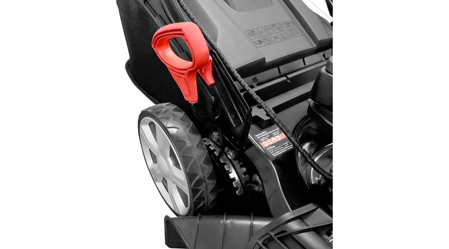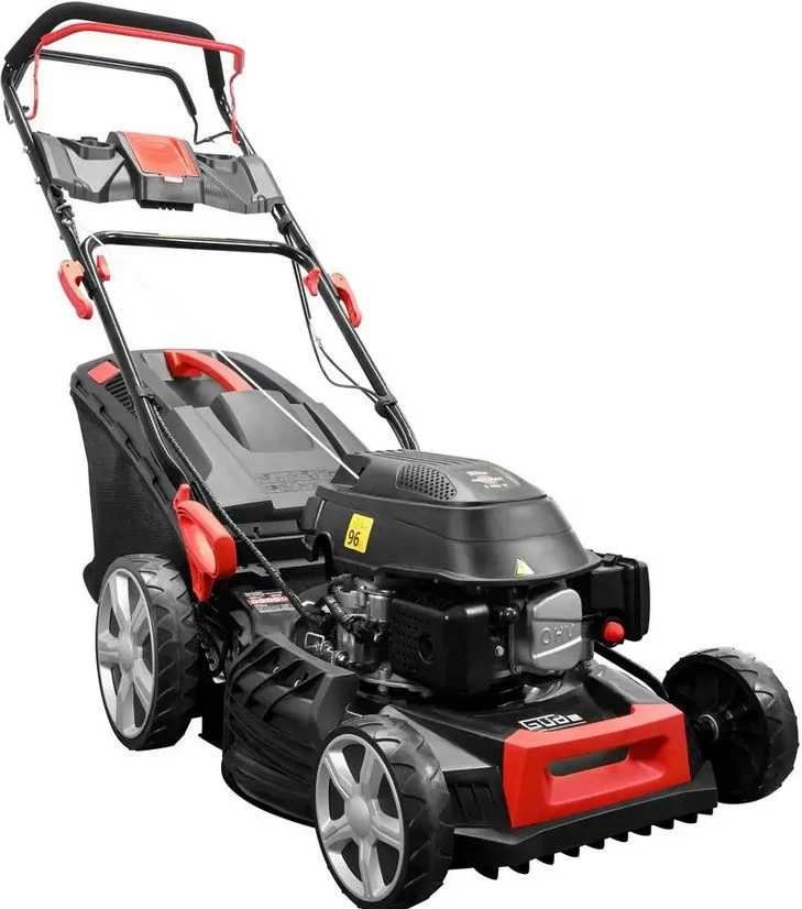 A GÜDE ECO WHEELER 464.4 R LI-ES egy erős és környezetbarát készülék, amely gyerekjátékká teszi a gyepápolást. Fejlett technológiájával és a 2,3 kW-os és 3,0 LE-s 4 ütemű Power Engine-ével hatékony megoldást kínál akár 1400 m²-es pázsit gondozására. A motor Li-Ion elektromos indítóval rendelkezik, ami különösen egyszerűvé teszi a fűnyíró beindítását. Alternatív megoldásként a hátrameneti indítás is használható. A fűnyíró ergonomikusan kialakított hajtókarral van felszerelve, amely kényelmes és hátbarát kezelést tesz lehetővé. A robusztus porszórt acéllemez ház biztosítja a készülék nagy stabilitását és hosszú élettartamát. A hajtás a hátsókerék-hajtáson keresztül történik, amelyet kapcsolható, egyenletes futású sebességváltó támogat, ami azt jelenti, hogy a fűnyíró 3,6 km/h-s sebességgel működik, és ezáltal lehetővé teszi a gyors fűnyírást. A vágási magasság kényelmesen, központilag 8 fokozatban állítható, hogy a pázsit a kívánt hosszúságúra lerövidüljön. A nagy, 62 literes fűgyűjtő zsák lehetővé teszi a lekaszált fű hatékony összegyűjtését. Számos funkció áll rendelkezésre a nagyobb rugalmasság érdekében, beleértve a mulcsozást és az oldalsó kiürítést.