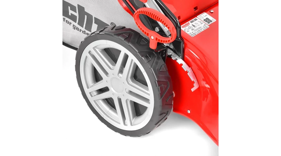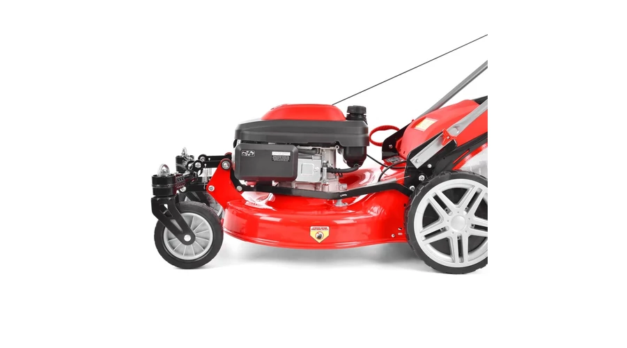 Az önjárónak köszönhetően könnyen irányítható. A vágási magasság 25 és 75mm között állítható, központilag, a fűnyíró jobb hátsó részén elhelyezett karral. A kerekek csapágyazottak, és a szabadalmaztatott futófelületük biztosítja a jó tapadást, és azt is, hogy a szennyeződés és a levágott fű nem tapad meg a kerekeken. A gyűjtőkosár erős textilből készül, és tökéletesen megtelítődik, térfogata 75 liter. Az ár tartalmazza az oldalkidobási lehetőséget és a mulcsbetétet. A magas forgónyomatéknak köszönhetően nem okoz gondot a sűrűbb gyep sem. Ideális nagyobb telkekre. A 3,5km/h menetsebességnek köszönhetően a fűnyírás könnyebb és kevésbé megterhelő. A felhasználók értékelni fogják a külső hatásoknak ellenálló fém alvázat. Gyorsan összecsukható fogantyú a könnyebb szállítás, és az Ön garázsában való helytakarékosság érdekében. A puha markolattal ellátott kényelmes fogantyú növeli a komfortos használatot a munka során. A fűnyírásnál történő kezelését megkönnyíti az első 7 colos és a hátsó 11 colos kerék. Az elülső ütköző a gép védelmét szolgálja, és egyúttal fogantyúval is el van látva az esetleges hordozáshoz. A vágómagasság központilag történő beállítása növeli a kényelmet a munka során. A kerekek minőségi golyós csapágyakkal vannak ellátva, ami minimálisra csökkenti az ellenállást. Minőségi, műanyag fedéllel és töltöttségi szintet kijelző berendezéssel ellátott fűgyűjtő kosár. A gyűjtőkosár falai légáteresztő szövetből készültek, ez javítja a légáramlást és biztosítja a fűgyűjtés minőségét. Önállóan forgó első kerekek.