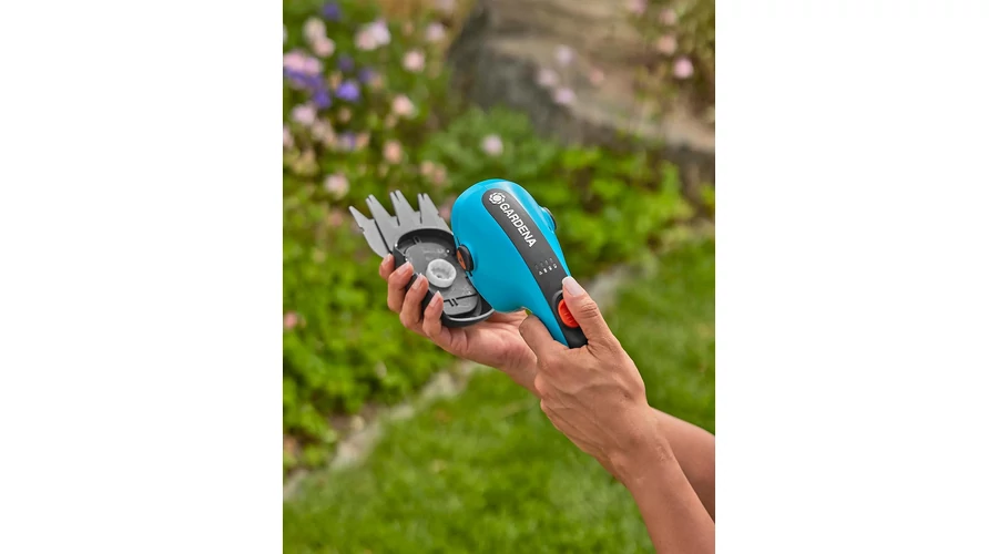 A ComfortCut Li akkumulátoros fűolló a cserjepengével (cikkszám: 9863-20) bokorollóvá alakítható. A kerekekkel ellátott teleszkópos fogantyú (cikkszám: 9859-20) lehetővé teszi a pázsit széleinek levágását anélkül, hogy lehajolna.