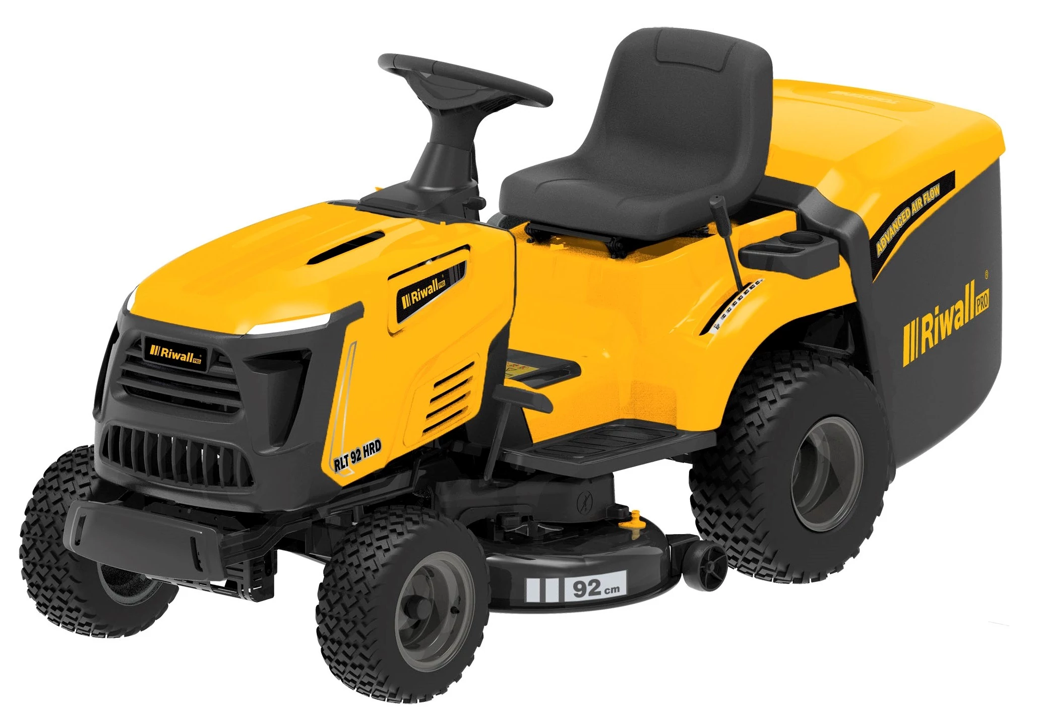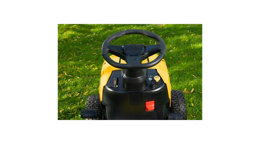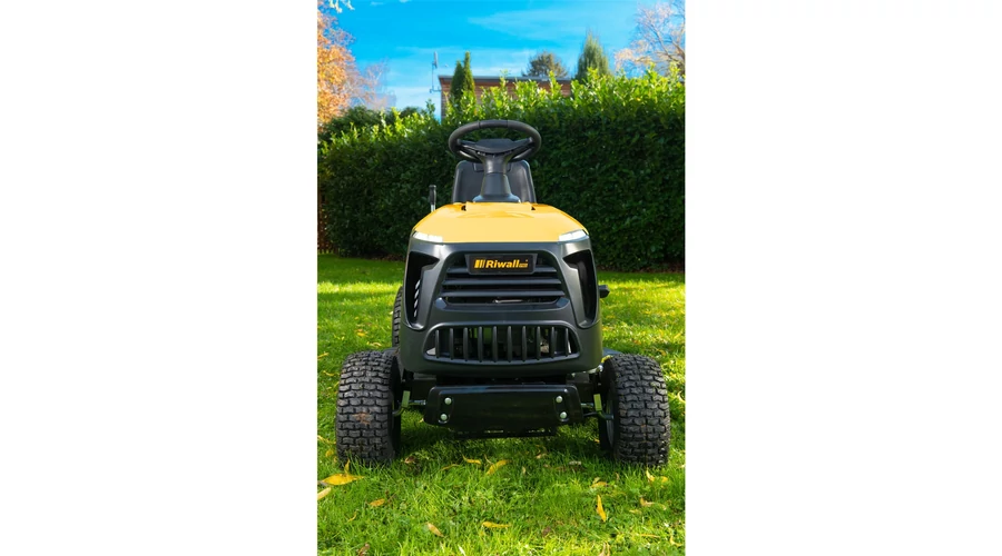 Vágás hátramenetben is – a legtöbb konkurens termék esetében a vágás hátramenetben kikapcsol, ami egyenletlen terepen a vágás folyamatos ki-bekapcsolását jelenti. A Riwall traktor esetében a gomb megnyomásával bekapcsolva tarthatja a vágást hátramenetben is