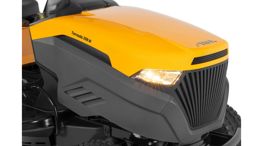 A STIGA TORNADO 398 M jó választás azok számára akik nem akarják a levágott füvet összegyűjteni, mert a mulcsozó és a fejlett oldalsó kidobós funkció hatékonyan kezeli a magas füvet is. Nagy teljesítményű, egy hengeres, 414 cm3-es STIGA motorral és 98 cm-es kétkésés vágóasztallal, 7 vágási magasságállítással 25 és 80 mm között, elektromágneses késindítással, puha markolatú New Comfort kormánnyal és New Comfort kényelmes üléssel van szerelve. Kétoldali mosó csatlakozóval arendelkezik a vágóasztalon. Az akkumulátortöltő külön megvásárolható, a vonóhorog és a mulcsozó készlet tartozék!