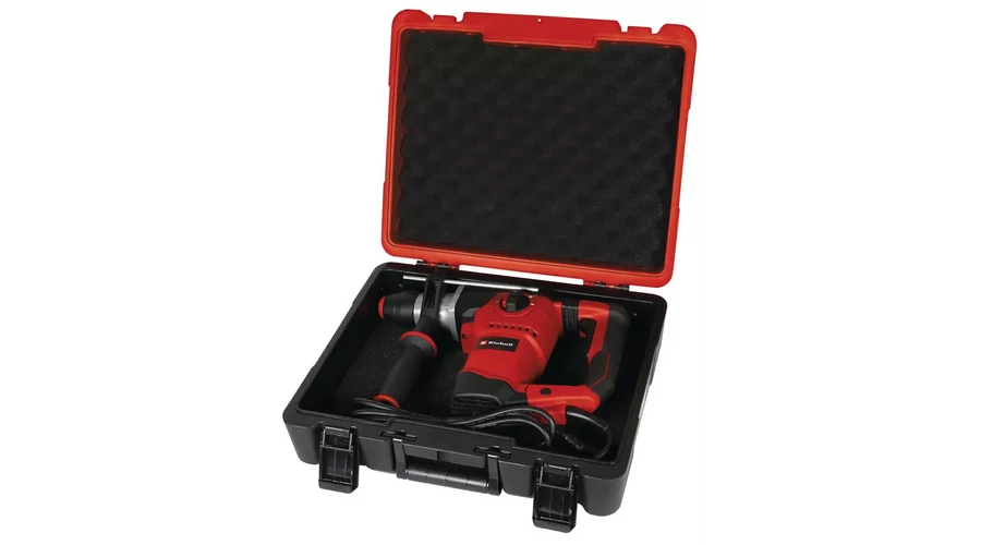 Az Einhell TE-RH 32-1600 4F fúrókalapács egy nagy teljesítményű készülék, melyet négy különböző funkciója tesz nélkülözhetetlen segítőtárssá: használja fúráshoz, kalapácsfúráshoz, valamint véséshez vésőrögzítéssel vagy rögzítés nélkül. A pneumatikus ütőszerkezet könnyedén megbirkózik a legkülönfélébb anyagokkal is. A bontási vagy felújítási munkák során még olyan kemény anyagokat is pillanatok alatt át tud vele fúrni, mint a beton és a kő. A nagy teljesítményről és a tökéletes végeredményről a fordulatszám-szabályozó elektronika, az 1600 W teljesítmény és a 4,5 J ütőenergia gondoskodik. A 3 méter hosszú kábelnek köszönhetően nagy sugarú körben dolgozhat a készülékkel. A fokozatmentesen állítható furatmélység-ütköző – a hajtóműhöz hasonlóan – keményfémből készült. A robusztus félautomata SDS-Plus tokmány gyors és egyszerű szerszámcserét tesz lehetővé. A Softgrip borítású, csökkentett rezgésszintű fogantyúval és bordázott pótfogantyúval felszerelt készülékkel még a nehéz feladatok elvégzése is gyerekjáték! Az Einhell TE-RH 32-1600 4F fúrókalapácsot praktikus szállító- és tárolókofferben vásárolhatja meg.