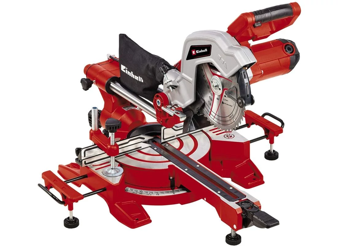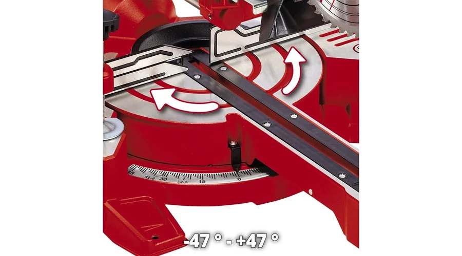 Az Einhell TC-SM 216 húzó-, fejező- és gérvágó fűrésze nélkülözhetetlen segítőtárs, akár otthon, a műhelyben, vagy a garázsban kell méretre vágnia vagy fűrészelnie. Ez a fűrész nem hiányozhat egyetlen ezermester eszköztárából sem! Az 1600 watt (S6 | 25%) teljesítménynek köszönhetően a fűrészlappal (külső-Ø: 216, belső-Ø 30) könnyedén elvághatja a munkadarabokat. A húzó funkció segítségével egyszerűen megmunkálhatja még a szélesebb anyagokat is. A forgóasztalon pontosan beállíthatja a vágás szögét, ami jelentősen megkönnyíti a ferde vágások kivitelezését. A barkácsolási munkákhoz leggyakrabban használt szögek rögzíthetők a forgóasztalon, így az adott szöget gyorsan és pontosan beállíthatja, amit egyébként az okos gyorsrögzítés is megkönnyít. A könnyen leolvasható szög- és szélességmérő skála még egyszerűbbé teszi a munkavégzést. A fűrészfej balra dönthető, így ferde vágásokat is végezhet vele. A vágási szélesség 90°-os állásnál 305 milliméter, 45°-nál pedig max. 210 milliméter. A vágási vonalat kijelölő lézer pontos munkavégzést tesz lehetővé. A bal és jobb oldali asztalszélesítéseknek köszönhetően hosszabb munkadarabokat is könnyedén elvághat a készülékkel. Ezeket a munkadarabokat a praktikus befogók segítségével rögzítheti. A kiváló minőségű keményfém fűrészlap mindig tökéletes végeredményt garantál. A tengelyzár és a rögzítőcsavar lehetővé teszik, hogy a fűrészlapot pillanatok alatt, néhány mozdulattal kicserélhesse. A fűrészlap mögött elhelyezkedő porelvezető csatlakozó adapter segít a munkaterület tisztán tartásában, és a fűrészpor elvezetésében. Az adapter átmérője 36 milliméter. Ha Önnek igazán fontos a munkaterületet tisztán tartása, akkor rögzítse az adapterre a készülékhez mellékelt porgyűjtő zsákot.