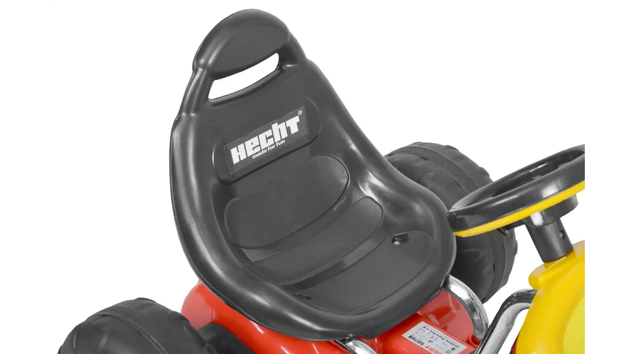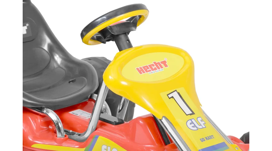 A gokart tartós műanyagból és acélcső szerkezetű vázzal készült.