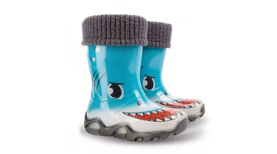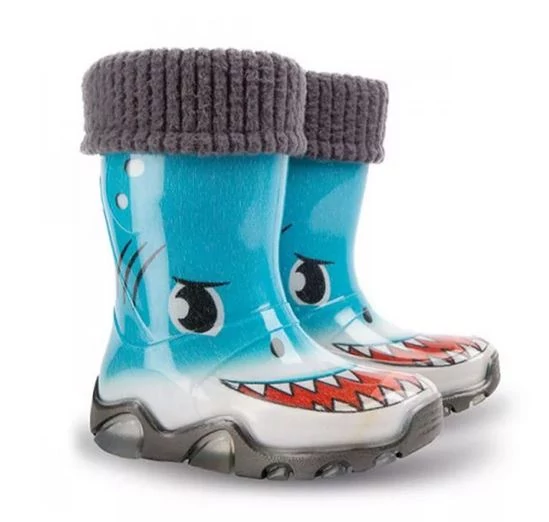 Bélelt PVC csizma gyerekeknek, divatos színekben, vidám mintákkal.
