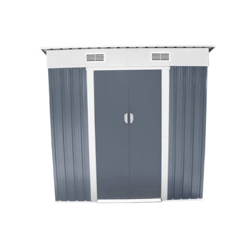 Minőségi kerti ház, tartós szerkezettel. Szürke és sötétszürke színkombinációban. Minden időszakban ideális, ha az összes eszközünket, kis kerti gépünket és egyéb kerti anyagunkat száraz helyen szeretnénk tárolni. A tető túlnyúlásos kialakítása lehetővé teszi, hogy a víz ne álljon meg a ház tetején.