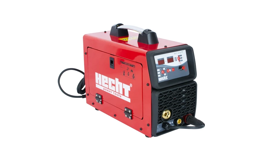Hecht 1830 MIG/MAG/MMA inverteres hegesztő, LIFT TIG hegesztési lehetőséggel. IGTB technológia. A teljesítmény folyamatosan állítható 20-200 A tartományban. A beállított értékek folyamatosan nyomon követhetők a beépített kijelzőn.