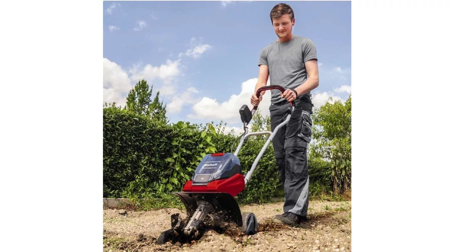 Az Einhell GE-CR 30 Li - Solo akkumulátoros motoros kapája egy nagyteljesítményű és nagyszerű segítőtárs kisebb és közepes méretű kertek talajának fellazítására. A motoros kapa nagy teljesítményét a Power X-Change sorozat két darab 18 V-os akkumulátor biztosítja. A Power X-Change családba tartozó kiváló minőségű lítium-ion sorozat valamennyi akkumulátorát és töltőkészülékét felhasználhatja a Power X-Change technológiával készült valamennyi Einhell termékhez. A nagyteljesítményű akkumulátoroknak köszönhetően nem kell többet bajlódnia a hosszabbító kábelekkel. A négy darab kiváló minőségű és erős vágókés gondoskodik arról, hogy a 300 milliméteres munkaszélességet, és a max. 200 milliméteres munkamélységet maximálisan kihasználhassa. Kényelmesen és hosszabbító kábelek nélkül feláshatja vele a zöldség- és virágágyásokat, illetve, a többi kerti munkát is előkészítheti vele. Az ergonomikus kialakítású, összecsukható nyéllel könnyebb, kényelmesebb a munkavégzés, az állítható magasságú kerekeknek köszönhetően pedig egyszerűen arrébb tolhatja a motoros kapát. A kétkezes kapcsoló még nagyobb biztonságot szavatol. A készüléket akkumulátorok és töltőkészülékek nélkül szállítjuk; ezeket külön vásárolhatja meg.