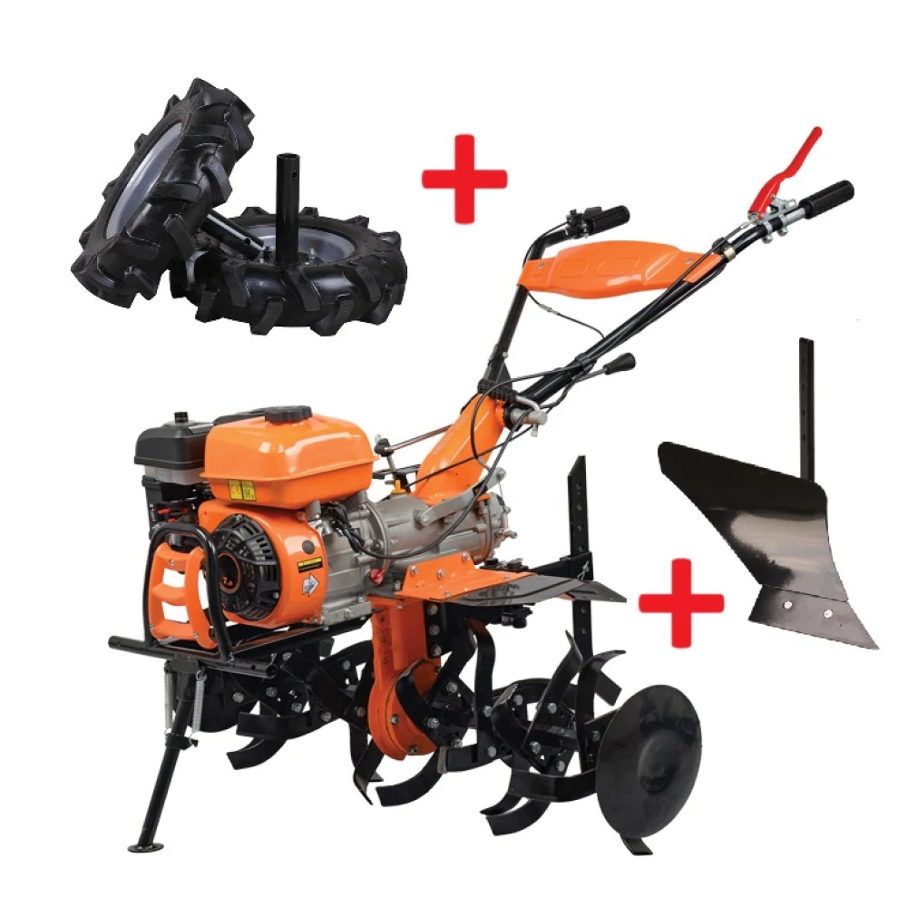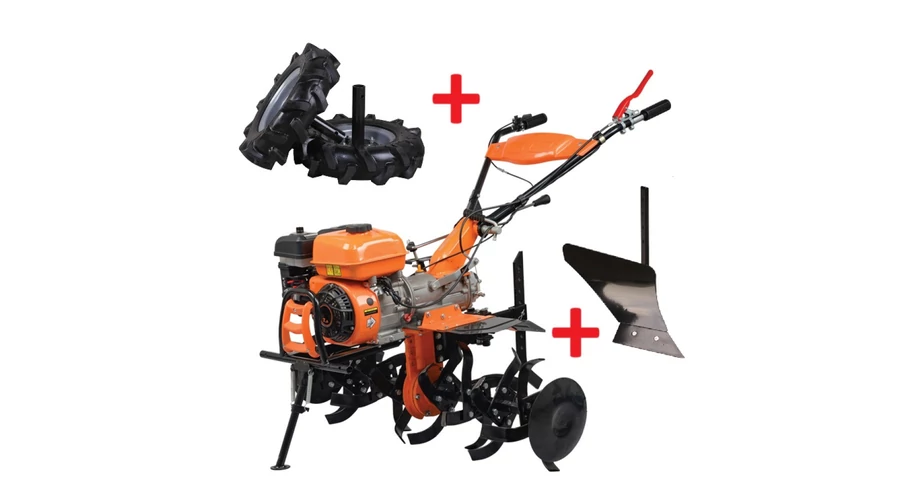 Felszerelés: kerék, állítható markolat, 6 kapatag, 2 tárcsa, eke