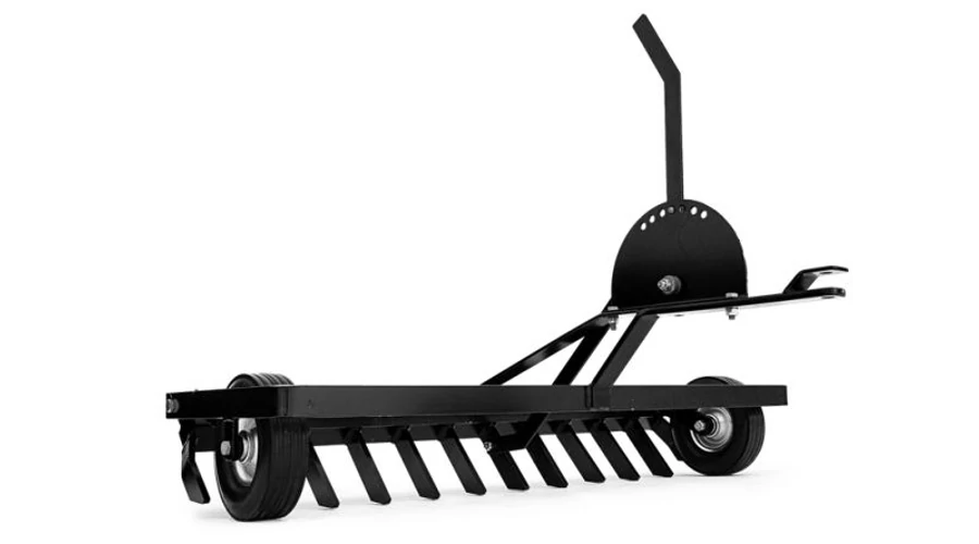 Robusztus kavicsborona gumi kerekekkel és állítható munkamélységgel. Forgó fogakkal, melyek hátramenetben behajlanak.