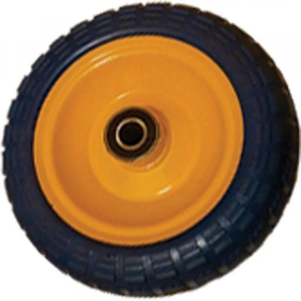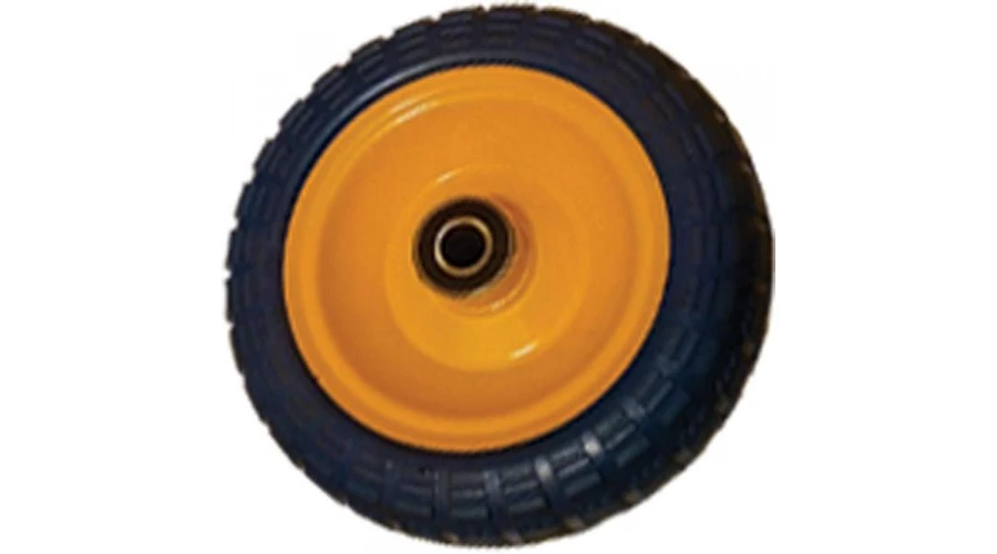 Egyedi molnárkocsi kerék fém felni, fekete termoplasztikus tömör gumi abroncs, sárga fémfelnivel