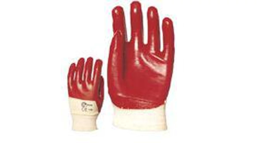Pamutra ökölcsontig mártott, piros PVC. Szellőző hátrész,gumírozott mandzsetta. Vékonyabb, gazdaságos változat.