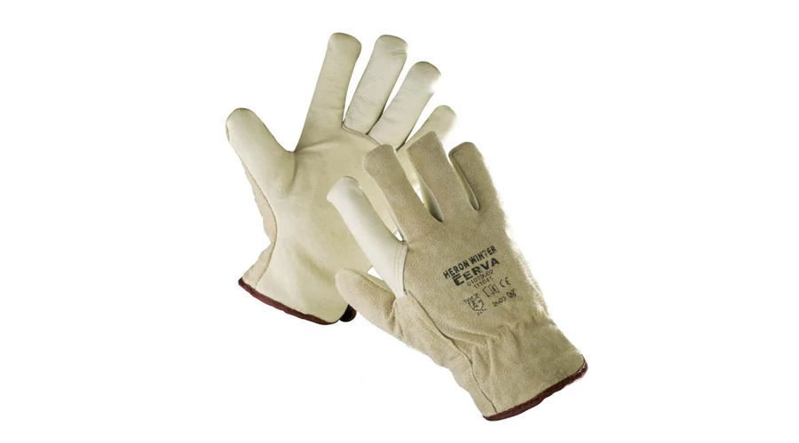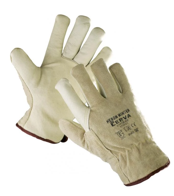 Színsertésbőr tenyerű és hasított sertésbőr kézhátú melegen bélelt kesztyű.