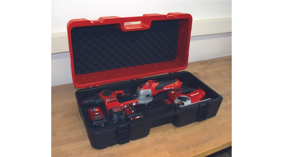 Az Einhell E-Box L70/35 koffer nem hiányozhat egyetlen ezermester eszköztárából sem. Tartson rendet szerszámai között - egyszerűen és hatékonyan! Mindegy, hogy hosszabb vagy rövidebb időre pakolja el, esetleg valahová elszállítja a szerszámokat; a kofferben helytakarékosan tárolhatja őket! A szerszámok és tartozékok univerzális tárolására szolgáló bőröndben lévő szivacsbélésnek köszönhetően úgy szállíthatja a szerszámokat a rendeltetési helyükre, hogy azok ne karcolódjanak meg. Az ergonomikus fogantyú kényelmes fogást és szállítást biztosít. A bőröndben teljes biztonságban tudhatja a szerszámokat és tartozékokat, hiszen a konstrukció még a kisnyomású vízsugár ellen is védett. A bőröndben max. 50 kilogramm súlyú szerszámot és tartozékot tárolhat.