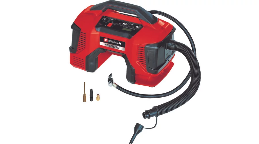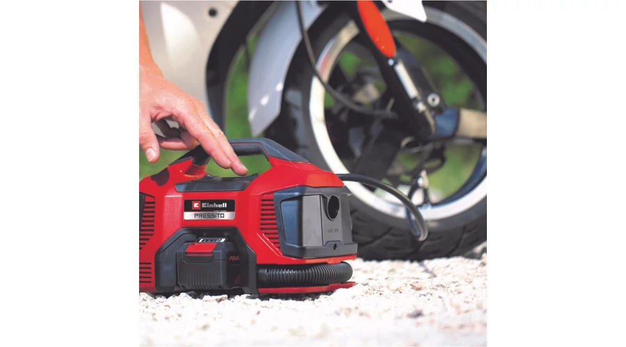 Az Einhell Pressito 18/21 akkumulátoros kompresszorból sosem fogy ki a szusz. Legyen szó pumpálásról vagy légtelenítésről, a kompresszor minden területen megállja a helyét! A kompresszor a Power X-Change termékcsalád tagja: a PXC-akku a sorozat valamennyi készülékéhez használható. A nagynyomású pumpának köszönhetően a kompresszor alkalmas autógumik, gumiabroncsok és labdák felfújására, az alacsony nyomású szívó funkció pedig segít ezek leengedésében. A digitális nyomásmérővel felszerelt digitális kompresszor kézi üzemeltetése rendkívül egyszerű. Válaszható mértékegységek a nyomás méréséhez: bar, PSI és kPa. A nyomást előre beállíthatja. Ha eléri ezt a nyomásértéket, a kompresszor automatikusan kikapcsol. Előzetes nyomásbeállítás nélkül a nyomógomb segítségével tudja nagynyomású pumpáláshoz használni a készüléket. A háromdarabos adapterkészletet a praktikus integrált tartóban tárolhatja. A készülék 1 db 18 V Power X-Change akkuval üzemeltethető. A készüléket akku és töltő nélkül szállítjuk. Ezeket külön – például praktikus kezdőcsomagok formájában – vásárolhatja meg.