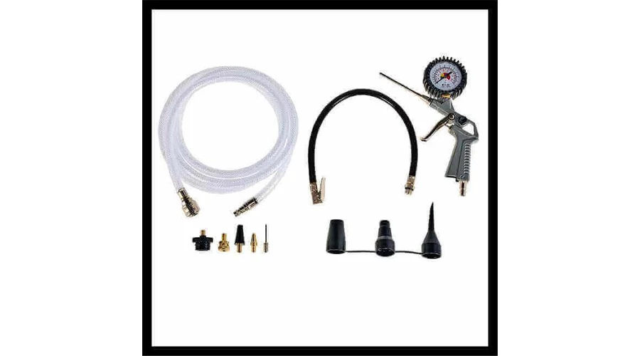 - Fúvópisztoly, nyomásmérő és 8 részes adapter (mellékelve)