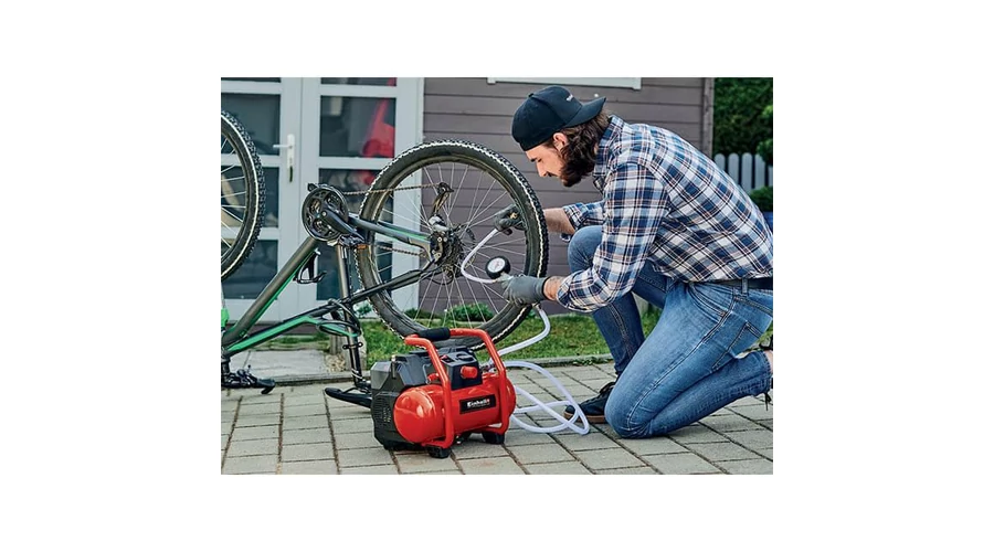 Ha az Einhell TE-AC 36/6/8 Li OF Set akkumulátoros kompresszort használja, akkor mindig lesz elegendő sűrített levegő a munkák elvégzéséhez, akár otthon, akár a műhelyben, akár a garázsban dolgozik. Erről a 6 liter űrtartalmú tartállyal ellátott mobil és nagy teljesítményű akkumulátoros kompresszor gondoskodik. A kompresszort Power X-Change akkumulátorokról üzemeltetheti, amelyek a termékcsalád valamennyi eszközéhez használhatók. A motor olaj- és karbantartásmentes, így csupán minimális költségráfordítást igényel. A kompresszor nyomásszabályozóval (max. 8 bar nyomásig) számos feladatra használható. A szabályozott sűrített levegővel történő munkákhoz a készüléket nyomásmérővel gyorscsatlakozó aljzattal látták el. A tervezés során nagy hangsúlyt fektettek az ergonómiára: így született meg az egyszerű szállítást biztosító fogantyú és a formatervezett géptest. A vízleeresztő csap kényelmes karbantartást tesz lehetővé. A rezgéscsillapító lábak csökkentik a rázkódás mértékét, és nagyfokú stabilitást biztosítanak. A felhasználó biztonságáról a biztonsági szelep gondoskodik. A kompresszort kiváló minőségű, 2,5 méter hosszú, szövetbevonatos sűrített levegős tömlővel szállítjuk. A készülékhez mellékelünk egy lefuvató pisztolyt, egy keréknyomás mérőt és egy nyolc darabból álló adapterkészletet. Az Einhell tíz év garanciát vállal a rozsdamentességre. A készüléket akkumulátor és töltőkészülék nélkül szállítjuk; ezeket külön - például egy praktikus kezdőcsomag formájában - vásárolhatja meg.