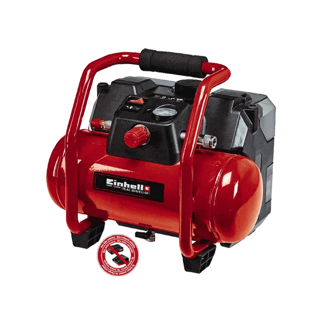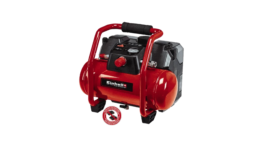 - Könnyen mozgatható, nagyteljesítményű, akkus kompresszor 6 liter űrtartalmú tartállyal
