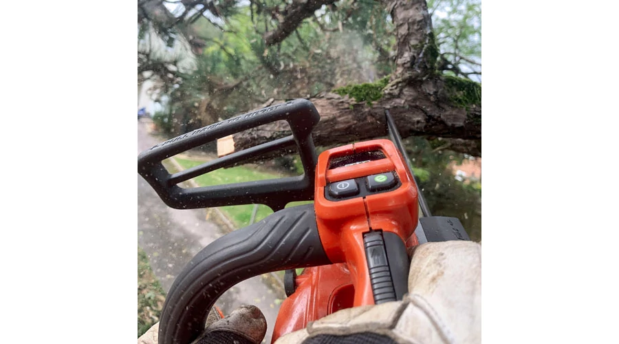 SavE funkció az üzemidő maximalizálása érdekében. Automatikus leállítás 3 perc üresjárat után, illetve aktivált láncfék esetén 30 perc után. IPX4 tanúsítvánnyal rendelkezik, így fröccsenő víz ellen védett. A maximális biztonság érdekében inerciavezérlésű láncfék. A vezetőlemez anyacsavarjai rögzítettek megakadályozva azok elvesztését.