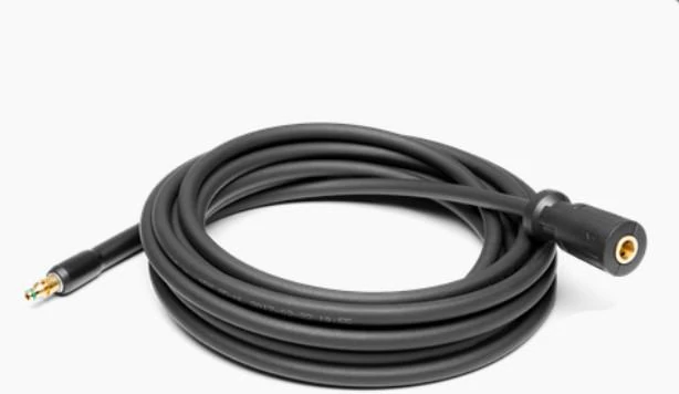 A gyorscsatlakozóval ellátott hosszabbító tömlő gumiburkolattal és acél megerősítéssel rendelkezik, amely rugalmasabb tömlőt biztosít. Jelentősen megnöveli a működési távolságot anélkül, hogy veszélyeztetné az elektromos áramellátást