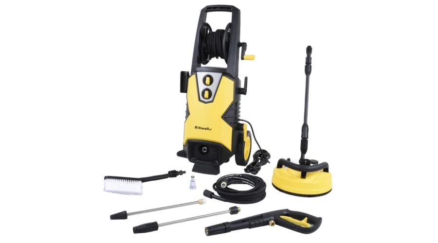 REPW 170 SET - magasnyomású mosó 170 bar, tartozékokkal önfelszívó funkcióval ellátva, vízfelszívás történhet tartályból, hordóból vagy folyóvízből is -auto-stop funkció átlátszó vízszűrő ránézéssel ellenőrizhető az sík vízsugár, igény szerint kiszélesíthető rotációs turbófúvóka a legmakacsabb szennyeződésekre beépített tartozéktartó a nagynyomású szórópisztoly és szórószár részére, tömlőtartó, tömlődob tartozékok: nagynyomású szórópisztoly fém szórószár forgatható fúvókával fém szórószár rotációs turbófúvókával erősített magasnyomású tömlő forgódobbon 8m magasnyomású hosszabbítótömlő 8 m univerzális mosókefe PRO felülettisztító fogantyúval és tartállyal elektromos kábel 5 m átlátszó vízszűrő integrált mosószertartály állítható mosószer-menyiséggel szivattyú önfelszívó funkcióval mozgatást elősegítő kerekek