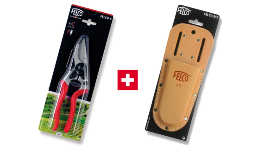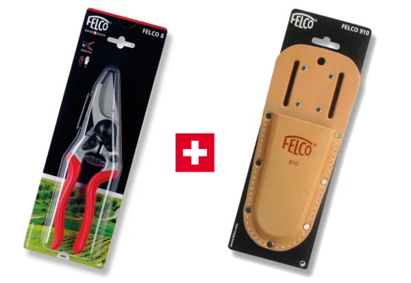 A FELCO 8 nyelei kovácsolt könnyűfémből készülnek, csúszásmentes, kellemes tapintású, piros műanyag bevonattal, amely megkopás vagy sérülés esetén cserélhető. A kiváló minőségű acél pengék keskenyek, szűk ágvillákba is beférnek, csavarokkal rögzítettek, szükség esetén könnyen cserélhetőek. A metszés hangtalan, mert a fémek ütközése helyett puha műanyag pufferek tompítják a csuklónkra egyébként kellemetlenül ható rázkódásokat. A támasztópenge széles lécsatornája megkönnyíti a nyári zöldmetszést. A vágópenge tövénél lévő öblöcske a drótvágó rész, a penge többi részét kíméljük meg ettől a megpróbáltatástól.