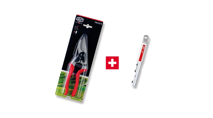A gyártó által készített, kedvezményes csomagban a FELCO 8 típusú metszőolló és a 905 típusú többfunkciós élező szerszám található meg. Páratlan kedvezmény 2021 végén, amely a készlet erejéig rendelhető, később nem lesz elérhető. A teljes csomag ára mindössze ezer forinttal drágább a metszőolló áránál, így az élező szerszámot a gyártó jelentős kedvezménnyel kínálja.