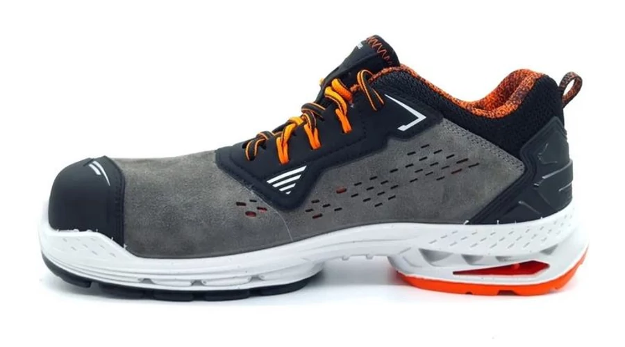 RUN@WORK Madrid munkavédelmi cipő velúrbőr felsőrésszel valamint SmellStop béléssel, amely megakadályozza a rossz szagokért és a gombásodásért felelős mikroorganizmusok elszaporodását. Új, átszúrás elleni Fresh'n Flex Plus Super Light betéttel, amely nagy teljesítményű és ultrakönnyű. A mindössze 6,5 mm vastagságú SlimCap kompozit lábujjvédelem könnyű és kényelmesebb, mint a fémből készültek. AirTech+Tpu-Skin fáradásgátló talp csökkentett vastagságú futófelülettel rendelkezik, amely nagyobb rugalmasságot és tartós csillapító hatást biztosít.
