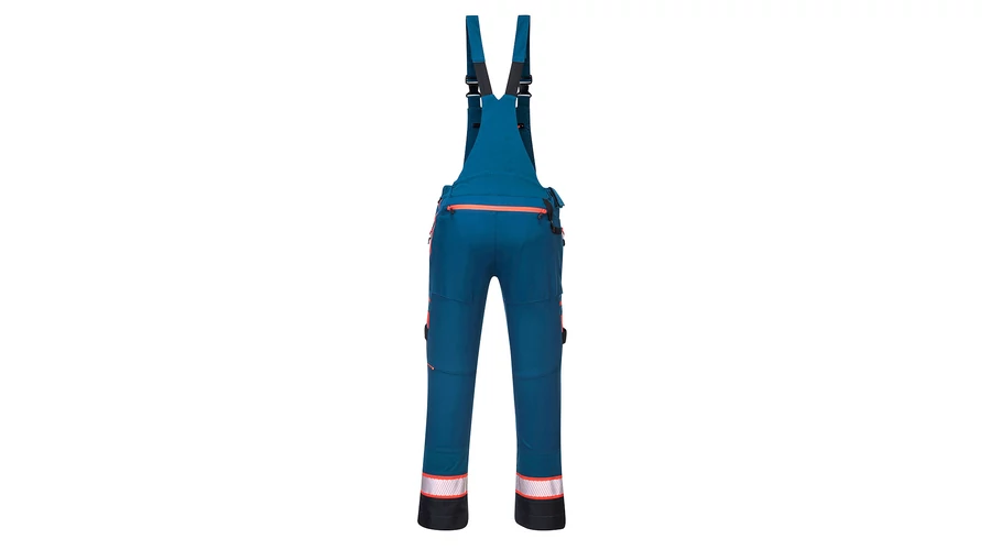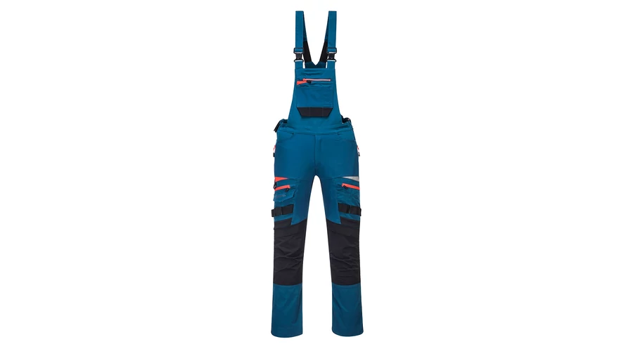 A DX4 munkanadrágot szakszerűen tervezték a kivételes kényelem, rugalmasság és védelem érdekében. Dinamikus 4X stretch anyagból készült, amely nagyobb mozgáskönnyítést biztosít. Több innovatív funkcióval készült, beleértve a fényvisszaverő szegélyeket, a többcélú zsebeket, a meghosszabbítható szegélyeket, az előre hajlított felső rakodó állítható térdvédő zsebeket és az állítható vállpántokat. Ezek a lengőzsebes nadrágok magasan emelkedő hátsó derékpánttal rendelkeznek, oldalt elasztikusak, ezzel biztosítva a védelmet minden pozícióban.