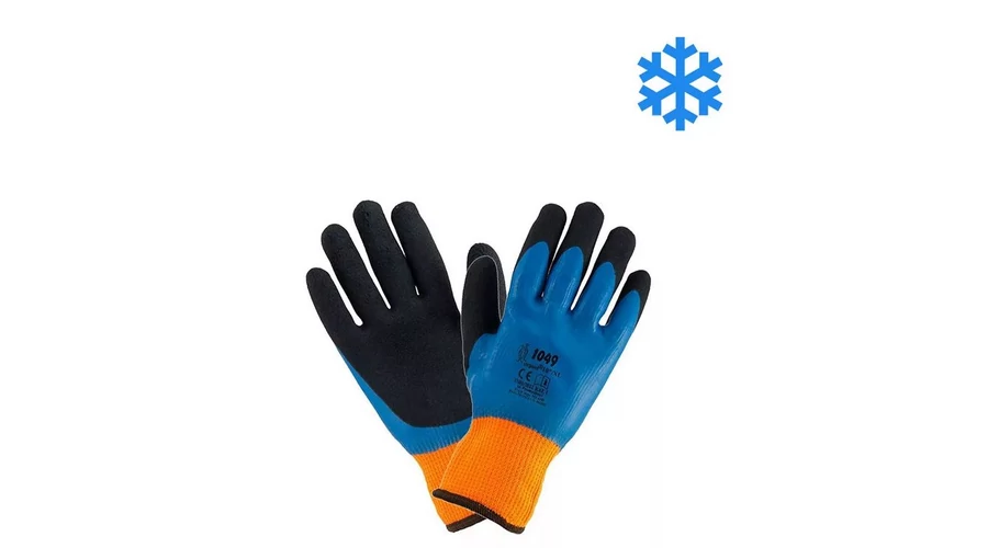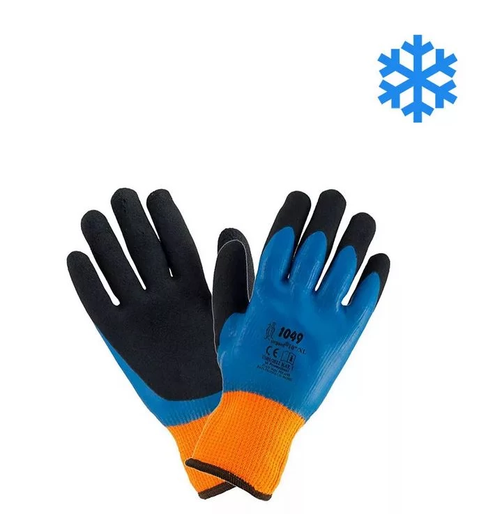 Poliészter alapanyagra duplán mártott védőkesztyű, csuklóig vastag latex mártás, ujjbegyei habosított latex bevonattal, bolyhos béléssel és gumírozott mandzsettával.