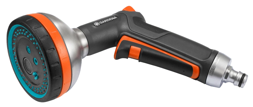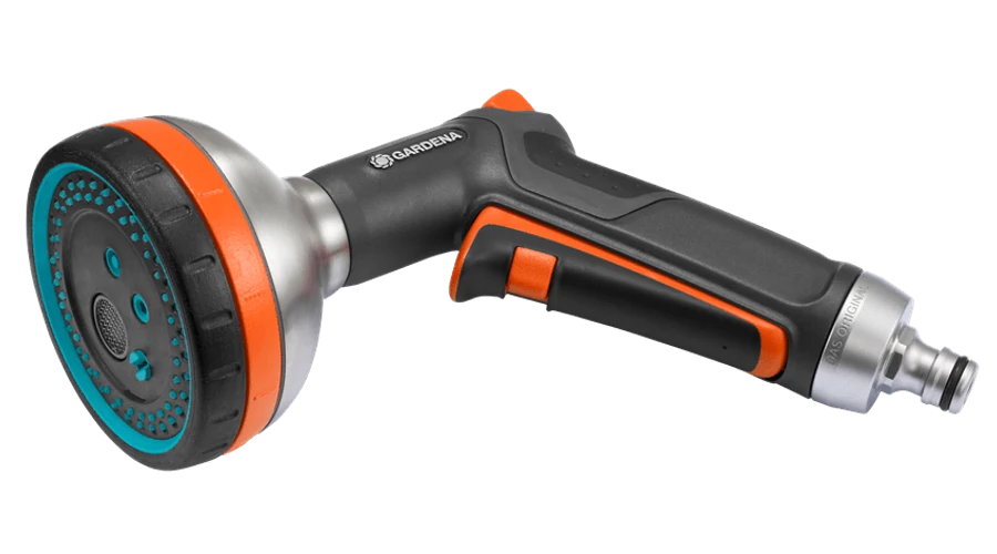 A GARDENA Premium többfunkciós öntözőfej mindenféle öntözési és tisztítási feladatot elvégez. A locsolópisztoly fején puha műanyag elemek találhatók, amelyek védelmet nyújtanak a sérülések ellen. Folyamatos öntözéskor az impulzuskioldót tartós üzemre állíthatjuk, ami kíméli a kezet.