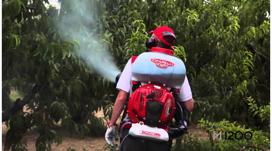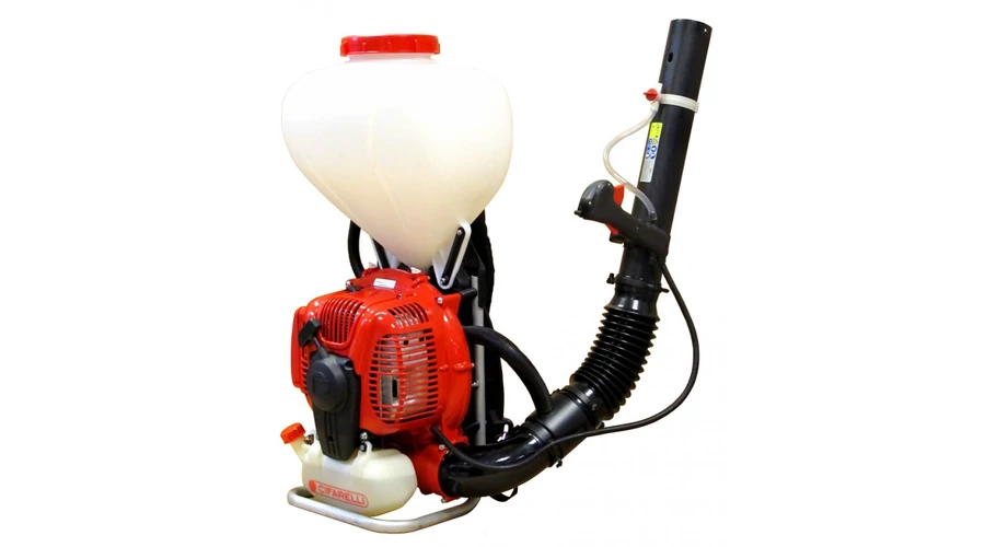 Olasz gyártású motoros permetező. Új fejlesztésű, 5 LE motorral, ami ideális esetben kimondottan nagy, 16 m függőleges szórást is lehetővé tesz! (Gyári katalógusadat.)