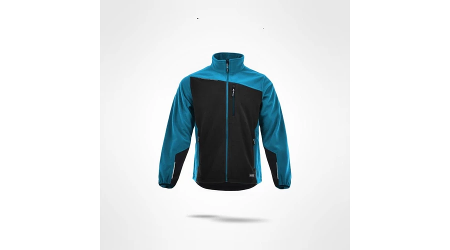 Anyaga: 100% poliészter, anyagvastagság: 350g/m2. Végig cipzáras kényelmes kivitel, elasztikus mandzsettával, cipzáras zsebekkel, hosszabított hátrésszel, kis fényvisszaverő elemekkel.