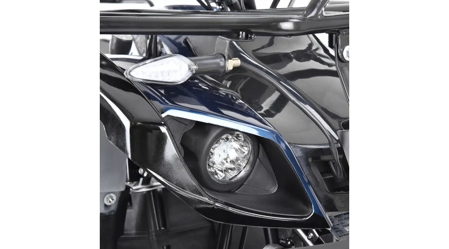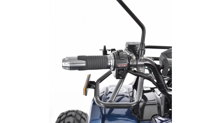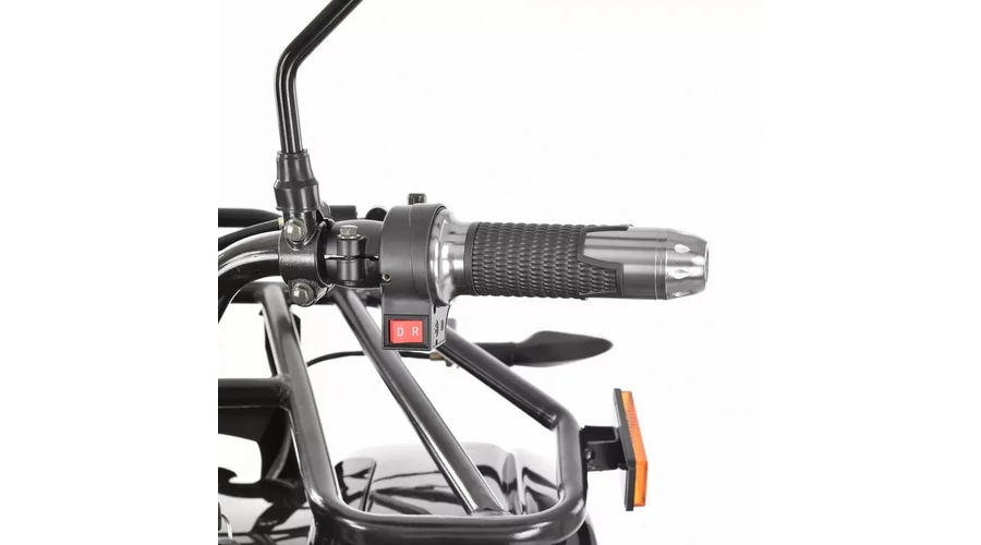 A quad kerékpár elülső dobfékekkel és hátsó folyadékfék-fékkkel van felszerelve. Mindkét fékkar elnyomható helyzetben van, amely például lejtőn vagy szállítás közben használható. A motort a hátsó felfüggesztési tengelyre szerelik fel, a motorról a tengelyre történő áttétel zárt hajtóművel történik. Van egy olyan csökkentés is, amelyet a jobb oldali kart a kormány irányítása alatt szabályoznak. Az első kerekek önfüggő felfüggesztő karok. A kifinomult alumínium felnik nagyméretű, durva futófelületű gumiabronccsal rendelkezik, amely tökéletes tapadást biztosít a területen is. A kormányhoz egy digitális tachométer található. A koporsó megjelenéssel és gyorsítással a gép megközelíti a "felnőtt" négykerekű motort égő motorral. Mindazonáltal a végső előny egy teljesen csendes kibocsátásmentes működés . Lehetőség van olyan helyeken is működtetni, ahol a füst vagy a füst illata zavarná a környezetet.