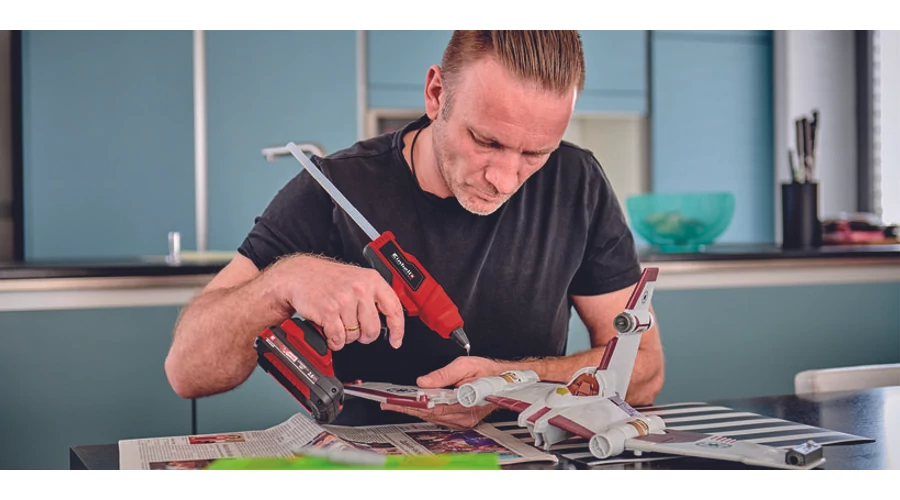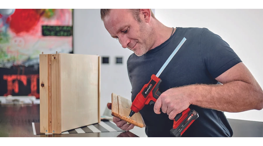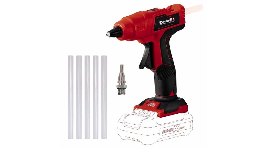 Az Einhell TE-CG 18 Li - Solo akkumulátoros ragasztópisztoly hasznos segítség amatőr barkácsolóknak és ezermestereknek egyaránt: használja a műhelyben és a hobbi pincében nagy precizitást igénylő ragasztási munkákhoz, repedések és törések kitöltéséhez, vagy akár repedések és hajszálrepedések tömítésére is! Az Einhell TE-CG 18 Li-Solo akkumulátoros ragasztópisztolya az Einhell Power X-Change termékcsalád tagja, melyet egy hosszú élettartamú és nagy teljesítményű, lítium-ion technológiával készült akkumulátorról működtethet. A praktikus ragasztópisztoly bekapcsolást követően 120 másodpercen belül eléri az üzemi hőmérsékletet, a LED-kijelzőről pedig bármikor leolvashatja a fűtési állapotot. Ha nem használja, a ragasztópisztoly 5 perc elteltével automatikusan kikapcsol, megelőzve ezzel a ragasztórúd túlmelegedését és az ebből eredő esetleges kockázatokat. A tartozékként mellékelt lapos ragasztófej lehetővé teszi, hogy mindig a munka elvégzéséhez legalkalmasabb szerszámmal dolgozzon: használja a fejet pl. keskeny törésvonalak vagy lapos élek mentén. A Softgrip felület tovább növeli a komfortérzetet, és még kényelmesebb munkavégzést biztosít. Az akkumulátoros ragasztópisztolyhoz öt darab ragasztórudat mellékelünk (átmérő: 11 mm, hosszúság: 200 mm). A készüléket akkumulátor és töltőkészülék nélkül szállítjuk; ezeket külön - például egy praktikus kezdőcsomag formájában - vásárolhatja meg. Mivel a készülék a Power X-Change családba tartozik, ezért a sorozat valamennyi akkumulátorát használhatja hozzá.