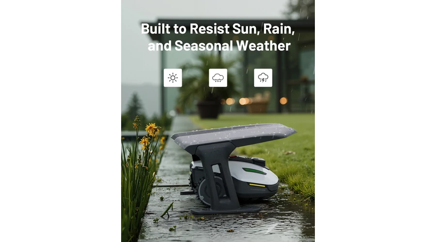 Időjárásálló védelem: hatékonyan megóvja robotfűnyíródat az intenzív napsugárzástól, esőtől és egyéb zord időjárási körülményektől. Prémium minőségű anyagokból készült, kivételesen ellenálló az UV-sugárzással, a kedvezőtlen időjárási körülményekkel és a környezeti hatásokkal szemben