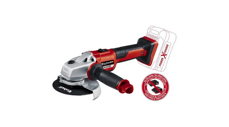 Az Axxio Einhell akkus sarokcsiszoló, praktikus eszköz a műhelyben, otthonban vagy a garázsban való munkavégzés során. Erőteljes, vezeték nélküli és könnyű vele a munkavégzés - ezen minőségi tulajdonságokat helyezték előtérbe a tervezési kritériumok során. A sarokcsiszoló tagja a Power X-Change termékcsaládnak, és a sorozat összes eszközével használható. Az optimális használatért minimum 2.6Ah-ás vagy nagyobb teljesítményű akkumulátorral használja. A szénkefe nélküli motor nagyobb teljesítményt és hosszabb élettartamot kínál. Lágy indítás és újraindítás elleni védelem a megnövelt felhasználói biztonságért. A kényelmes munkavégzést a vékony kialakítás, az ergonomikus puha markolat és kiegészítő fogantyú biztosítja. A rendkívül egyenletes működés érdekében a motor és a hajtómű külön lett választva. A gyorsbeállító eszközzel ellátott korongvédő rugalmas munkavégzést tesz lehetővé. A rugalmassághoz, még a kiegészítő fogantyú járul hozzá melyet két helyzetbe lehet állítani. A vezeték nélküli sarokcsiszoló túlterhelés-védelemmel, és robusztus alumínium fogaskerékházzal készült a hosszú élettartam érdekében. Ezt a termék vágókorong, akkumulátor és töltő nélkül kerül kiszállításra.