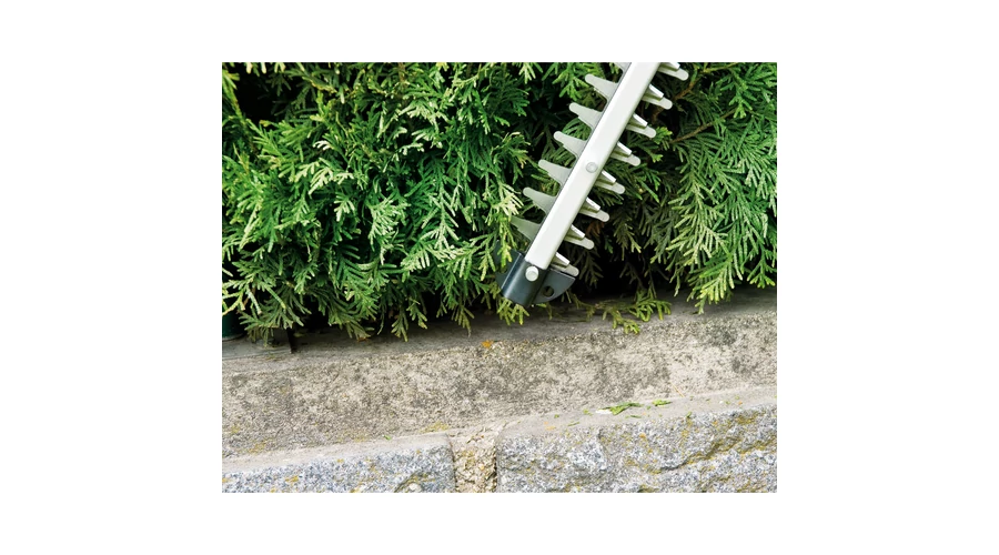 A GH-EH 4245 elektromos sövényvágó praktikus, megbízható eszköz, amely nélkülözhetetlen segédeszköz sövények, cserjék, bokrok gondozására. Ellentétesen futó, mindkét oldalon vágó lézerrel vágott, gyémánt csiszolású, acélból gyártott biztonsági kései kiváló vágási eredményt hoznak. A hatékony erőátvitelt az erős, hosszú élettartamú fém hajtómű biztosítja. A kiegészítő fogónak és az alacsony súlynak köszönhetően megerőltetés nélkül irányítható a sövényvágó. A GH-EH 4245 kétkezes biztonsági kapcsolója és a nagy felületű kézvédő gondoskodik a munkavégzés közbeni jelentős biztonságról. A késeket alumíniumból gyártott pengetakaró védi. Kiegészítő fogó kínál magas fokú ergonómiát a kényelmes munkavégzéshez. A tápkábelt húzásmentesítő védi a sérüléstől. Stabil tartótokban biztonságosan szállítható az elektromos sövényvágó.