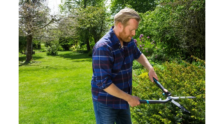 A GARDENA 2in1 EnergyCut sövénynyíró olló ideális a gyors vágásokhoz, és extra teljesítményt nyújt, amikor csak szükséged van rá a sövény vagy bokrok vágása közben. Egy gombnyomással aktiválhatod a nagyobb erőt. Amint bekapcsol, a sövénynyíró nyitási szöge megnő, így 2,5-szer nagyobb teljesítményre képes. Ez lehetővé teszi, hogy a vastagabb ágakat kis erőfeszítéssel, pillanatok alatt levágd. Ha a kiegészítő fokozat nincs bekapcsolva, az olló ideális a vékony ágak gyors vágására is. A sövénynyíró robusztus, mégis könnyű anyagokból készült, így kis súlya van, ami azt jelenti, hogy hosszabb ideig vághatsz fáradás nélkül. Nagy hangsúlyt fektettek a kezelhetőségre és a munkakomfortra is: Az EnergyCut ergonomikusan kialakított, kerek, szimmetrikus ErgoTec nyelekkel rendelkezik, amelyek jól kézbe illenek. A beépített puha ütköző elnyeli az ütéseket és védi a csuklót. Az optimális munkaszögnek köszönhetően a kezed vágás közben mindig biztonságos munkapozícióban van. A praktikus extra fokozat mellett maguk a pengék is lenyűgözőek: Tapadásmentes acélból készülnek, és különösen tartósak. A kések hullámos élezése miatt nagyobb felületek vágásakor is nagy hatékonyság érhető el, mivel a levelek és gallyak nem csúsznak ki, hanem a vágási területen maradnak. A beépített ágvágóval könnyedén levághatod a vastag ágakat.