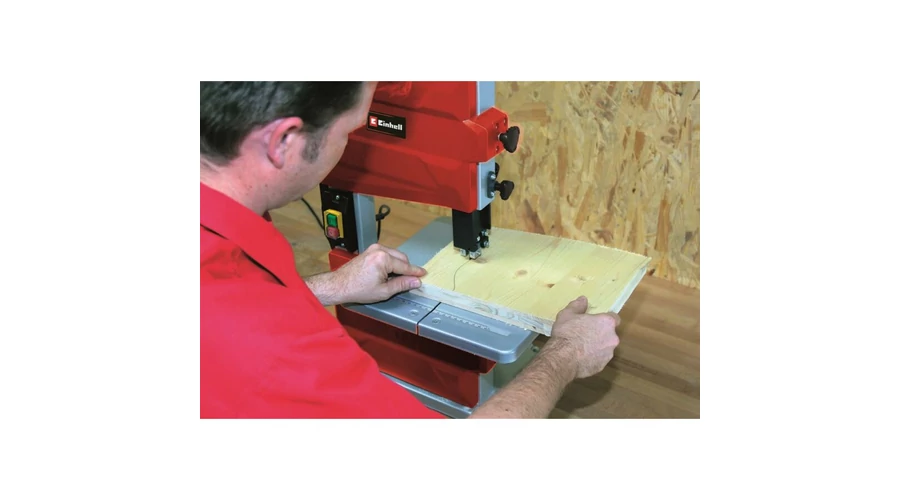 Az Einhell TC-SB 200/1 szalagfűrész egy nagyméretű alapgép lelkes otthoni felhasználóknak és ezermestereknek. A szalagfűrész egy nehéz, ugyanakkor mégis rugalmasan kezelhető készülék, amellyel még a legkülönbözőbb munkakörülmények között is elvégezheti a feladatát. Egyenes vagy ferde vonalú vágások, ferdén vagy szálirányban: a szalagfűrésszel egyik sem lehet akadály. Attól függően, hogy milyen fűrészlapot helyez fel, fát, fémet és műanyagot vághat a 250 W teljesítményű motorral felszerelt fűrész segítéségével. A szalagfűrész másik nagy előnye, hogy a vágás vonala keskeny; így óvja az anyagot, és energiát is spórol. Ha rendeltetésszerűen használja a TC-SB 200/1 készüléket, akkor nem kell aggódnia a biztonság miatt. A magasságállítás nem csak akkor nagy segítség, ha precíziós vágást végez a készülékkel; segítségével mindig a felhasználó magasságához állíthatja a készüléket, ami nagyobb biztonságot és kényelmesebb munkát szavatol. A fűrészlap rögzítőt többféle pozícióba állítva csökkentheti a fűrészlap rezgését, amelynek köszönhetően jóval biztonságosabban használhatja a készüléket, és a vágáskép is sokkal szebb lesz. A fűrészlap-védelem magasságát is tetszőlegesen beállíthatja, illetve, a vágandó anyag vastagságához is igazíthatja. A gyári csomagolásban található tolófa elengedhetetlen kellék a biztonságos munkavégzéshez. Mivel a fűrészasztal fokozatmentesen dönthető, ezért még bonyolultabb ferde vágásokat is elvégezhet a készülékkel. A párhuzamos ütköző és a golyóscsapágyas vezetés segítik az otthoni barkácsolókat, hogy egyenesen és pontosan vágjanak a készülékkel.