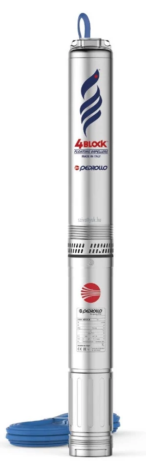 A Pedrollo 4BLOCKm 4/8 búvárszivattyú gyárilag 20 méter elektormos kábellel szerelt kivitelben készül.
